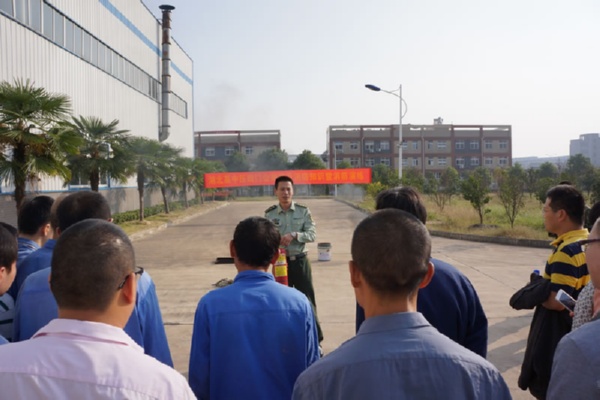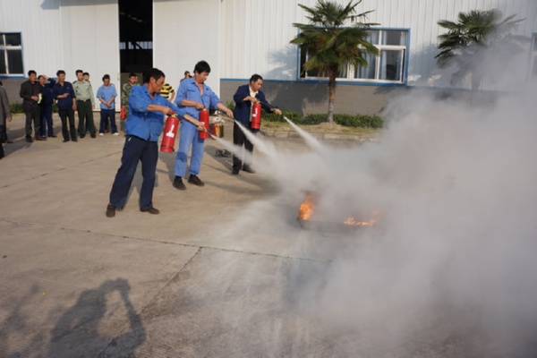 逃身演練完成后,所有人員到公司院內(nèi)空地,在事先預(yù)備“火災(zāi)”現(xiàn)場,首先由消防中隊教官,具體講解了滅火器的使用方法、滅火的注意事項和撲火的操作步驟,然后由消防戰(zhàn)士作操作示范,最后開始實戰(zhàn)演練,點燃事先準備好的油棉紗,現(xiàn)場燃起大火及濃煙,由本次演練總指揮(公司副總經(jīng)理、安委會副主任)隨即啟動消防滅火救援預(yù)案,按照預(yù)案要求進入實戰(zhàn)狀態(tài),指揮參加演練的義務(wù)消防隊員,拿起滅火器具,遵照操作要領(lǐng)和步驟,火勢很快被壓住并撲滅,隨后仔細進行全方位檢查,撲滅暗火、余火。除消防安全知識培訓(xùn)時間外,整個演習(xí)時間約65分鐘左右。
